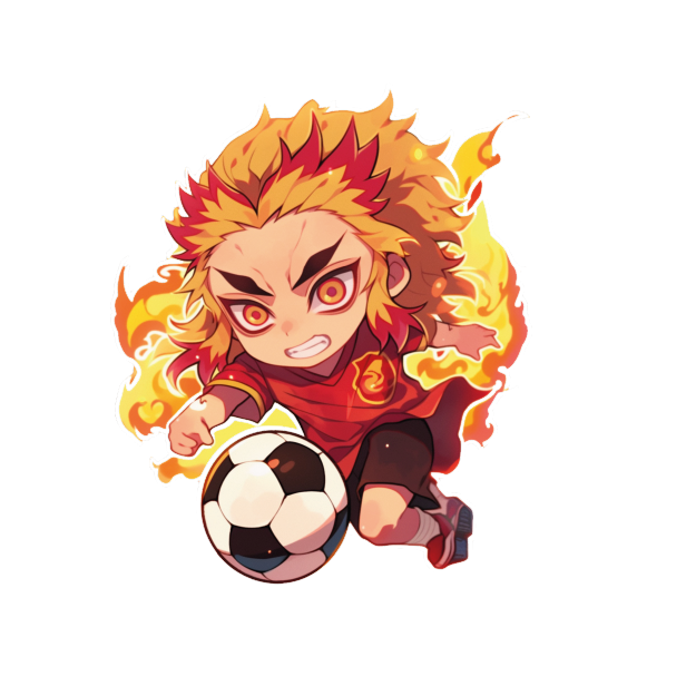 Puissance de Feu ! Joueur de foot stylé Rengoku avec des flammes. Un sticker intense et dynamique. Pour les fans de manga.