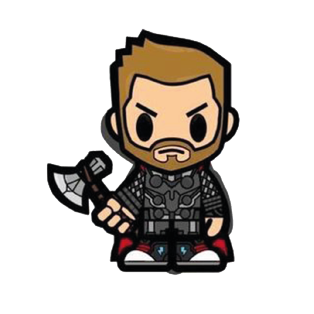 Le Dieu du Tonnerre armé de Stormbreaker ! Thor Chibi, mignon et menaçant. Un design exclusif pour montrer votre force. Stickers 5 & 10 cm.