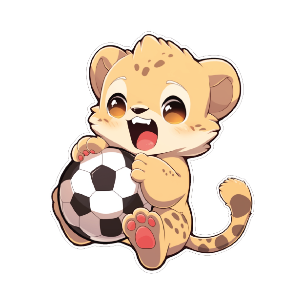 Ce mignon guépard Chibi avec son ballon ! Parfait pour les amoureux des animaux et du foot. Design craquant et vendeur. Sticker premium.